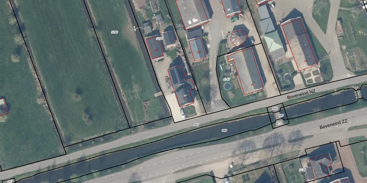 Het perceel waarop Boveneind NZ 92 staat heeft een oppervlakte van 1755 m². Dit is een zeer groot perceel. De perceeloppervlakte wordt geregistreerd door het Kadaster. Gedetailleerde informatie over de maten van dit perceel kunt u vinden in het rapport Kadastrale kaart met maatvoering van Boveneind NZ 92.