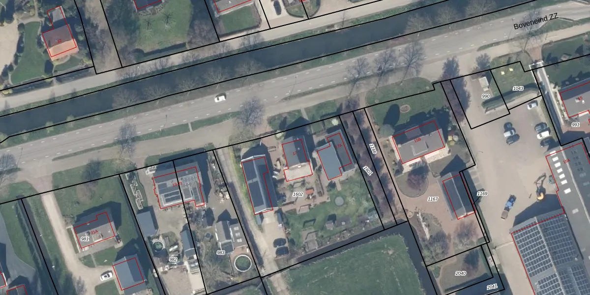 Het perceel waarop Boveneind ZZ 17 staat heeft een oppervlakte van 1952 m². Dit is een zeer groot perceel. De perceeloppervlakte wordt geregistreerd door het Kadaster. Gedetailleerde informatie over de maten van dit perceel kunt u vinden in het rapport Kadastrale kaart met maatvoering van Boveneind ZZ 17.
