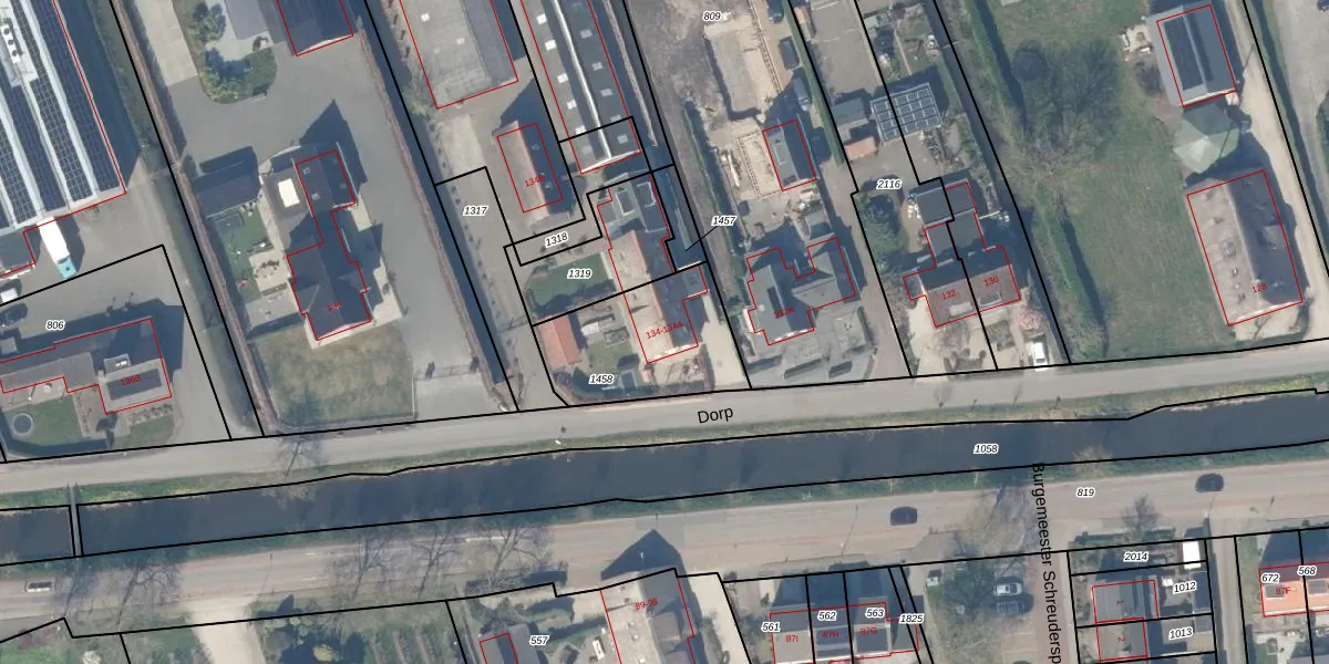 Het perceel waarop Dorp 134 staat heeft een oppervlakte van 467 m². Dit is een groot perceel. De perceeloppervlakte wordt geregistreerd door het Kadaster. Gedetailleerde informatie over de maten van dit perceel kunt u vinden in het rapport Kadastrale kaart met maatvoering van Dorp 134.