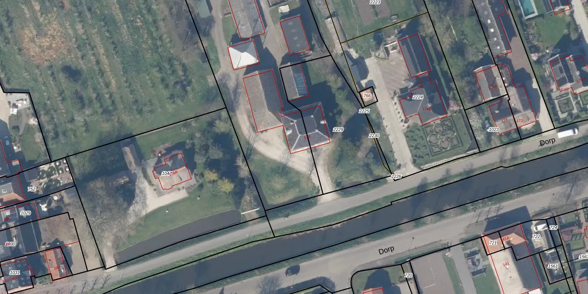 Het perceel waarop Dorp 178 staat heeft een oppervlakte van 3315 m². Dit is een zeer groot perceel. De perceeloppervlakte wordt geregistreerd door het Kadaster. Gedetailleerde informatie over de maten van dit perceel kunt u vinden in het rapport Kadastrale kaart met maatvoering van Dorp 178.