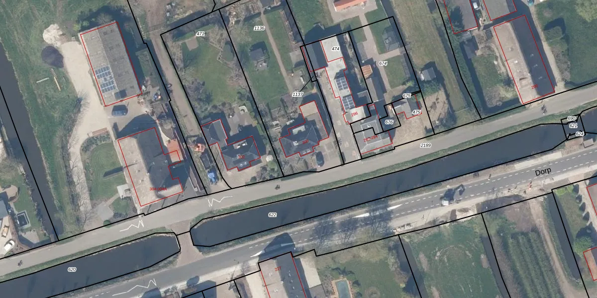 Het perceel waarop Dorp 300 staat heeft een oppervlakte van 1349 m². Dit is een zeer groot perceel. De perceeloppervlakte wordt geregistreerd door het Kadaster. Gedetailleerde informatie over de maten van dit perceel kunt u vinden in het rapport Kadastrale kaart met maatvoering van Dorp 300.