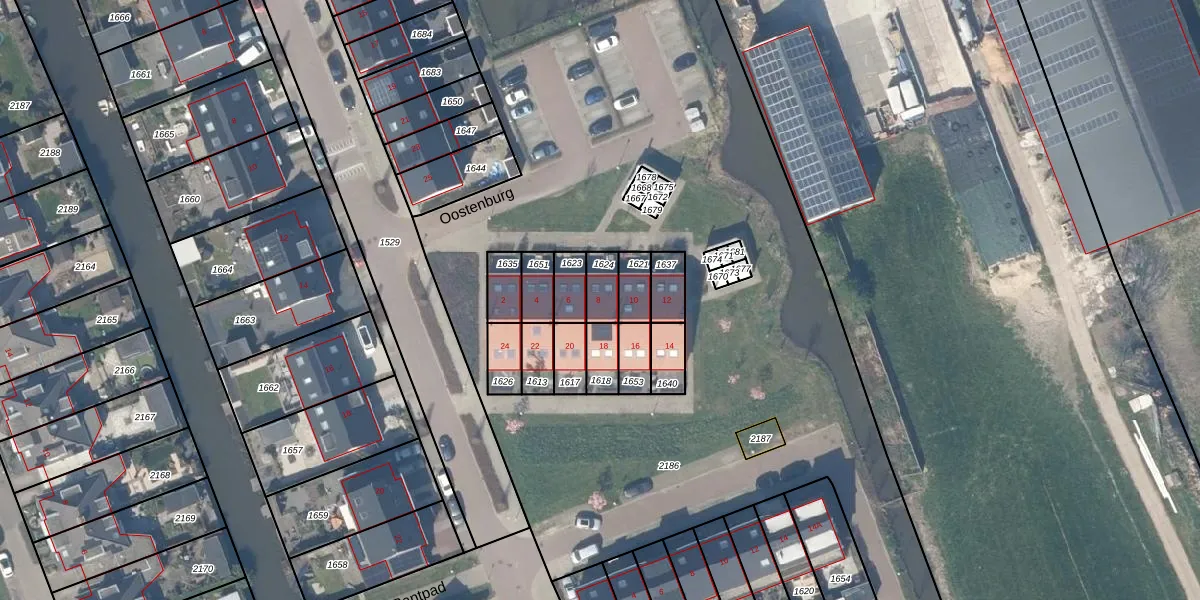 Oostenburg 8 is gelegen op kadastraal perceel LPK00E1624. Deze kadastrale aanduiding is uniek en wordt gebruikt door het Kadaster om eigendomsrechten en andere zakelijke rechten vast te leggen. Het perceel maakt onderdeel uit van de kadastrale gemeente Lopik.