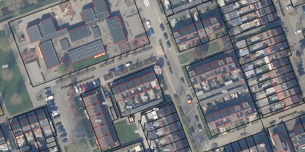 Het perceel waarop Prinses Beatrixstraat 1 staat heeft een oppervlakte van 764 m². Dit is een groot perceel. De perceeloppervlakte wordt geregistreerd door het Kadaster. Gedetailleerde informatie over de maten van dit perceel kunt u vinden in het rapport Kadastrale kaart met maatvoering van Prinses Beatrixstraat 1.