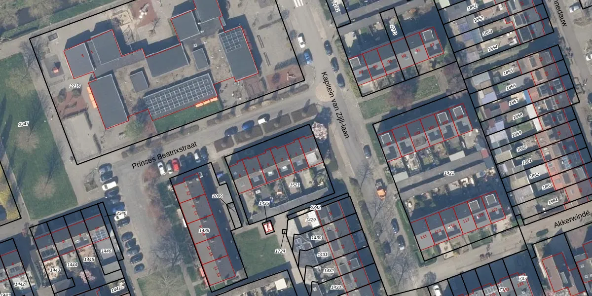 Het perceel waarop Prinses Beatrixstraat 2 staat heeft een oppervlakte van 764 m². Dit is een groot perceel. De perceeloppervlakte wordt geregistreerd door het Kadaster. Gedetailleerde informatie over de maten van dit perceel kunt u vinden in het rapport Kadastrale kaart met maatvoering van Prinses Beatrixstraat 2.
