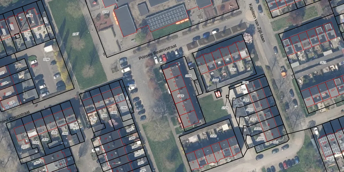 Het perceel waarop Prinses Beatrixstraat 8 staat heeft een oppervlakte van 598 m². Dit is een groot perceel. De perceeloppervlakte wordt geregistreerd door het Kadaster. Gedetailleerde informatie over de maten van dit perceel kunt u vinden in het rapport Kadastrale kaart met maatvoering van Prinses Beatrixstraat 8.