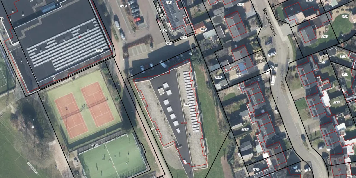 Het perceel waarop Burgemeester Buijvoetsplein 24 staat heeft een oppervlakte van 2708 m². Dit is een zeer groot perceel. De perceeloppervlakte wordt geregistreerd door het Kadaster. Gedetailleerde informatie over de maten van dit perceel kunt u vinden in het rapport Kadastrale kaart met maatvoering van Burgemeester Buijvoetsplein 24.