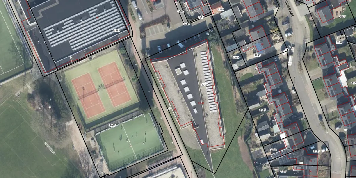 Het perceel waarop Burgemeester Buijvoetsplein 56 staat heeft een oppervlakte van 2708 m². Dit is een zeer groot perceel. De perceeloppervlakte wordt geregistreerd door het Kadaster. Gedetailleerde informatie over de maten van dit perceel kunt u vinden in het rapport Kadastrale kaart met maatvoering van Burgemeester Buijvoetsplein 56.