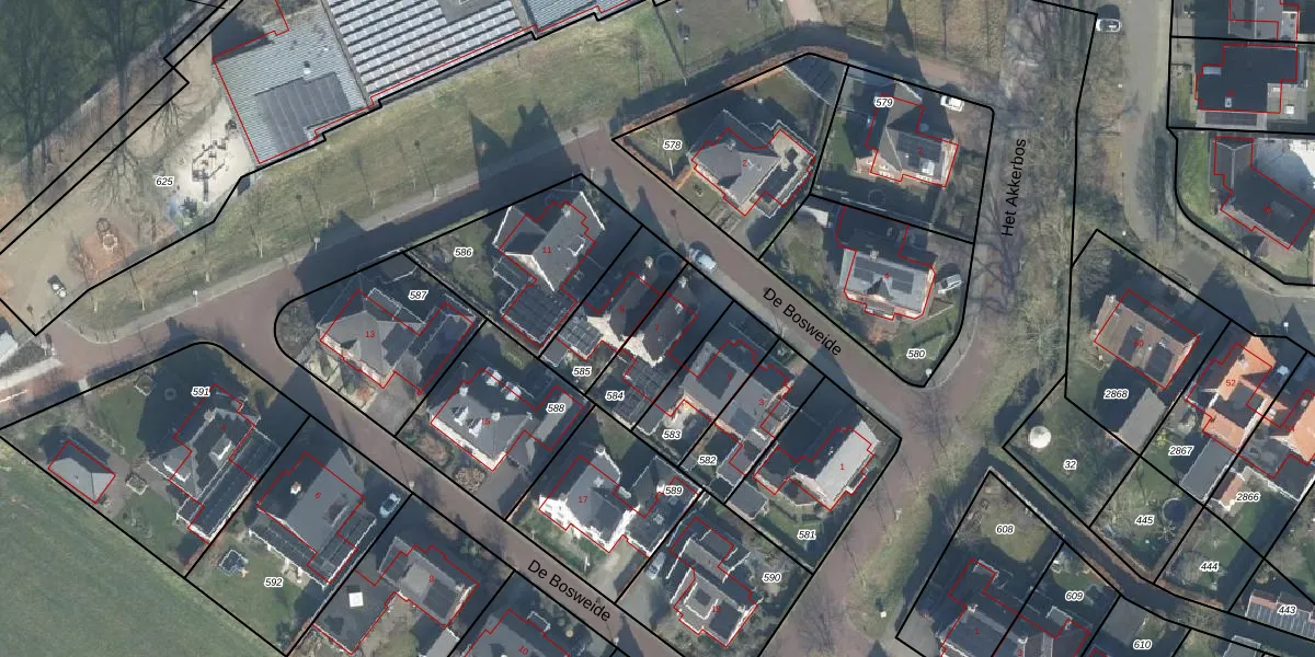 Gebruik de zoekbalk of klik op een perceel voor informatie over de adressen binnen dit perceel.