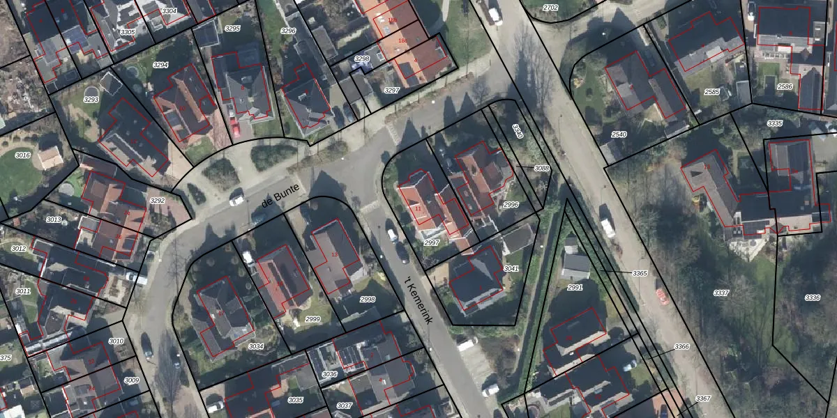 Gebruik de zoekbalk of klik op een perceel voor informatie over de adressen binnen dit perceel.