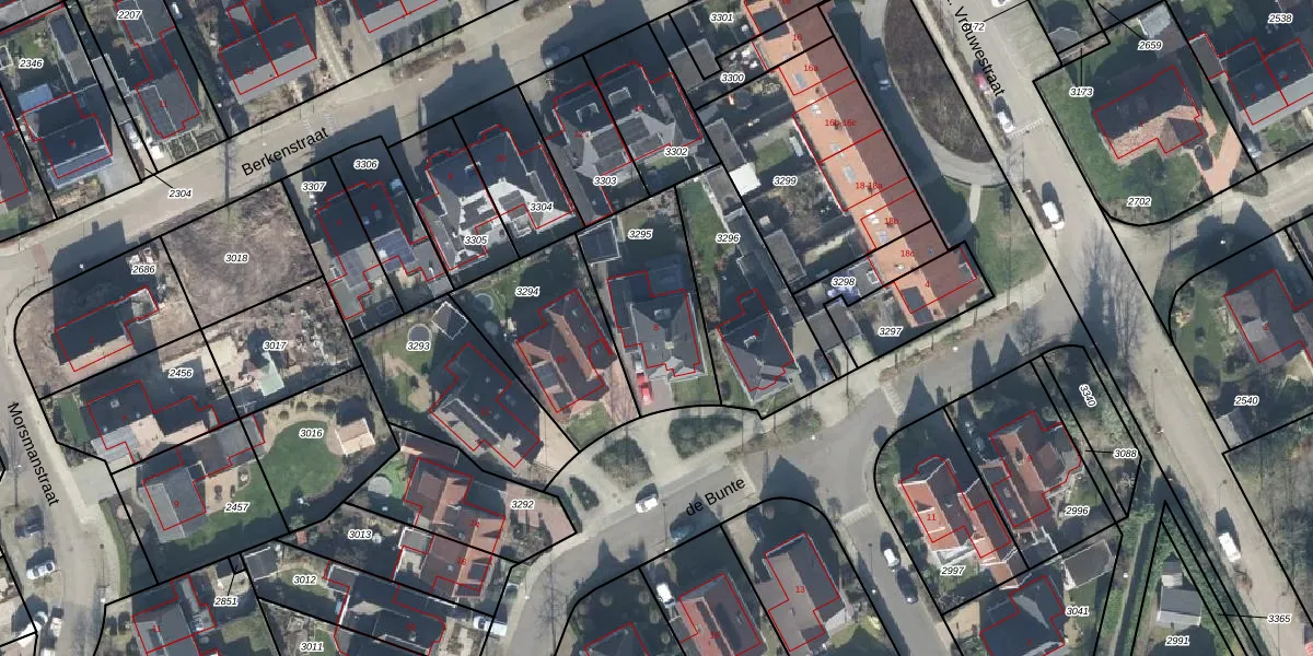 Het perceel waarop de Bunte 8 staat heeft een oppervlakte van 459 m². Dit is een groot perceel. De perceeloppervlakte wordt geregistreerd door het Kadaster. Gedetailleerde informatie over de maten van dit perceel kunt u vinden in het rapport Kadastrale kaart met maatvoering van de Bunte 8.