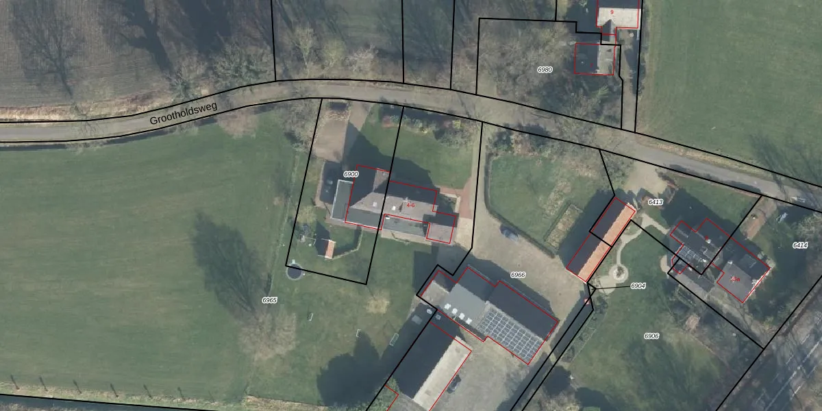 Het perceel waarop Grootholdsweg 6 staat heeft een oppervlakte van 9235 m². Dit is een zeer groot perceel. De perceeloppervlakte wordt geregistreerd door het Kadaster. Gedetailleerde informatie over de maten van dit perceel kunt u vinden in het rapport Kadastrale kaart met maatvoering van Grootholdsweg 6.
