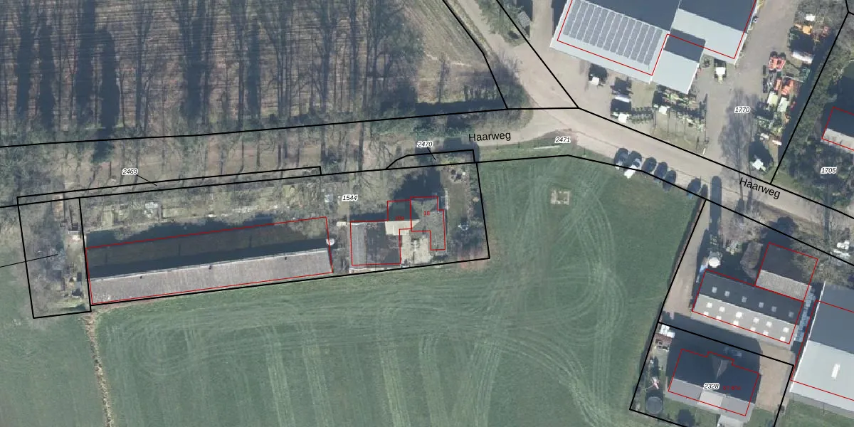 Het perceel waarop Haarweg 18 staat heeft een oppervlakte van 2251 m². Dit is een zeer groot perceel. De perceeloppervlakte wordt geregistreerd door het Kadaster. Gedetailleerde informatie over de maten van dit perceel kunt u vinden in het rapport Kadastrale kaart met maatvoering van Haarweg 18.