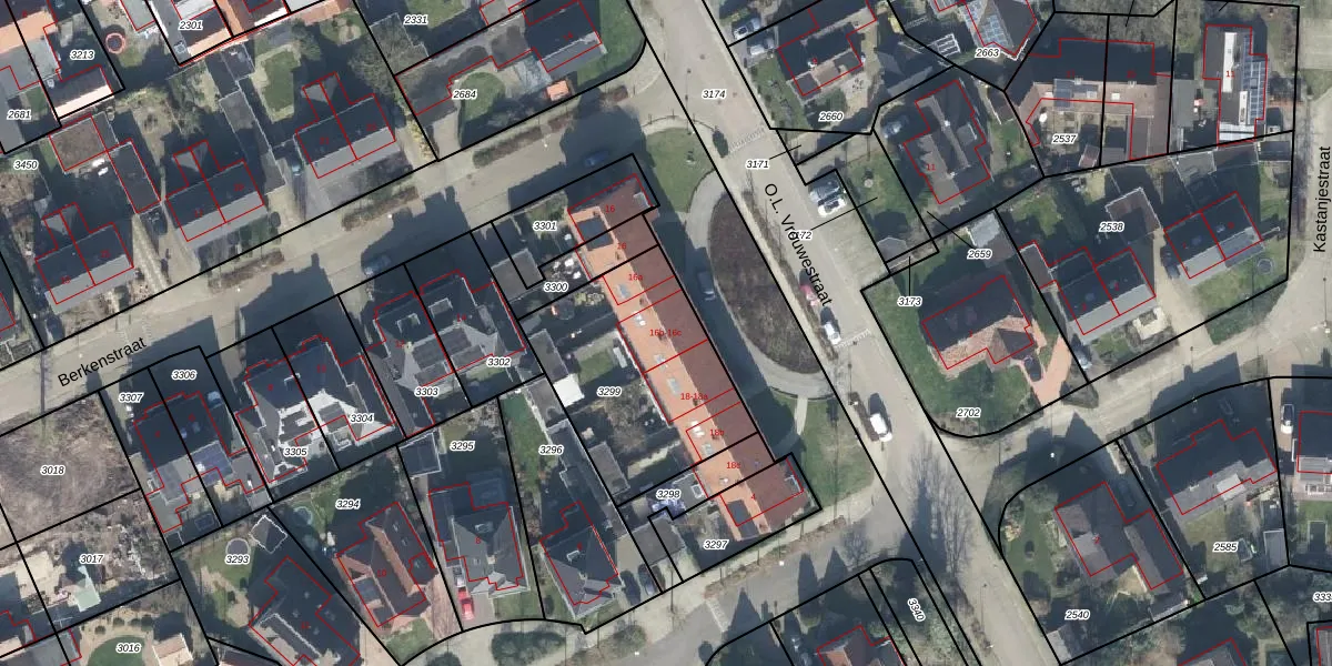 Het perceel waarop O.L. Vrouwestraat 16-c staat heeft een oppervlakte van 767 m². Dit is een groot perceel. De perceeloppervlakte wordt geregistreerd door het Kadaster. Gedetailleerde informatie over de maten van dit perceel kunt u vinden in het rapport Kadastrale kaart met maatvoering van O.L. Vrouwestraat 16-c.