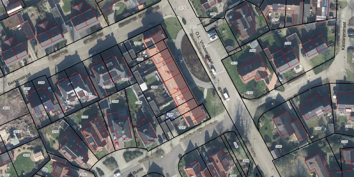 Het perceel waarop O.L. Vrouwestraat 18-a staat heeft een oppervlakte van 767 m². Dit is een groot perceel. De perceeloppervlakte wordt geregistreerd door het Kadaster. Gedetailleerde informatie over de maten van dit perceel kunt u vinden in het rapport Kadastrale kaart met maatvoering van O.L. Vrouwestraat 18-a.