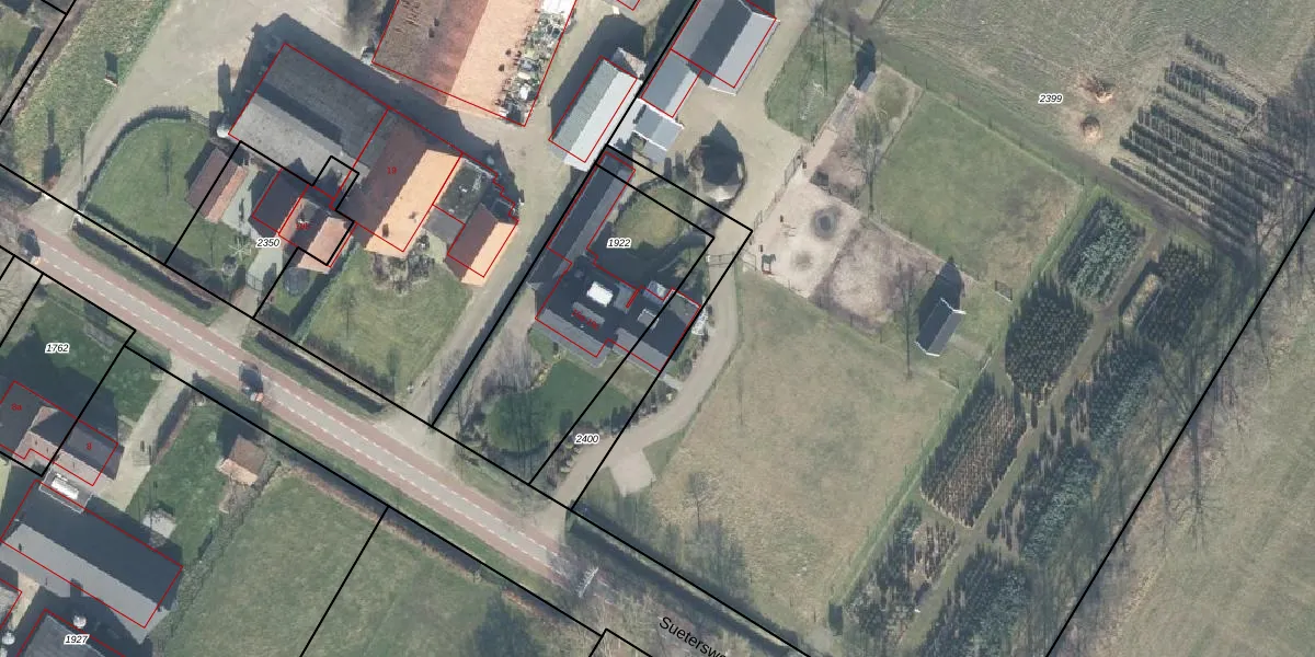 Suetersweg 19-c is gelegen op kadastraal perceel DDN01C2400. Deze kadastrale aanduiding is uniek en wordt gebruikt door het Kadaster om eigendomsrechten en andere zakelijke rechten vast te leggen. Het perceel maakt onderdeel uit van de kadastrale gemeente Ambt-Delden.