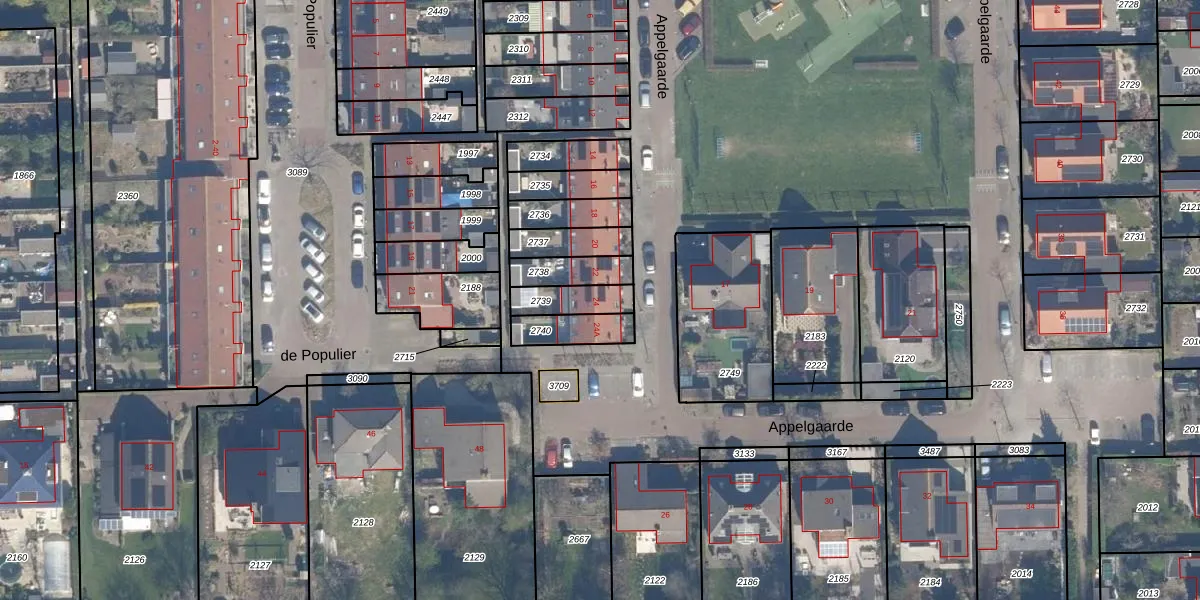 Gebruik de zoekbalk of klik op een perceel voor informatie over de adressen binnen dit perceel.