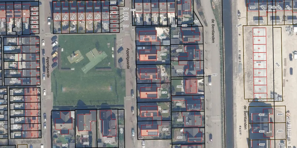 Gebruik de zoekbalk of klik op een perceel voor informatie over de adressen binnen dit perceel.