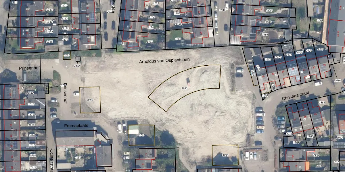 Het perceel waarop Arnoldus van Osplantsoen 12 staat heeft een oppervlakte van 2,7 ha. Dit is een zeer groot perceel. De perceeloppervlakte wordt geregistreerd door het Kadaster. Gedetailleerde informatie over de maten van dit perceel kunt u vinden in het rapport Kadastrale kaart met maatvoering van Arnoldus van Osplantsoen 12.