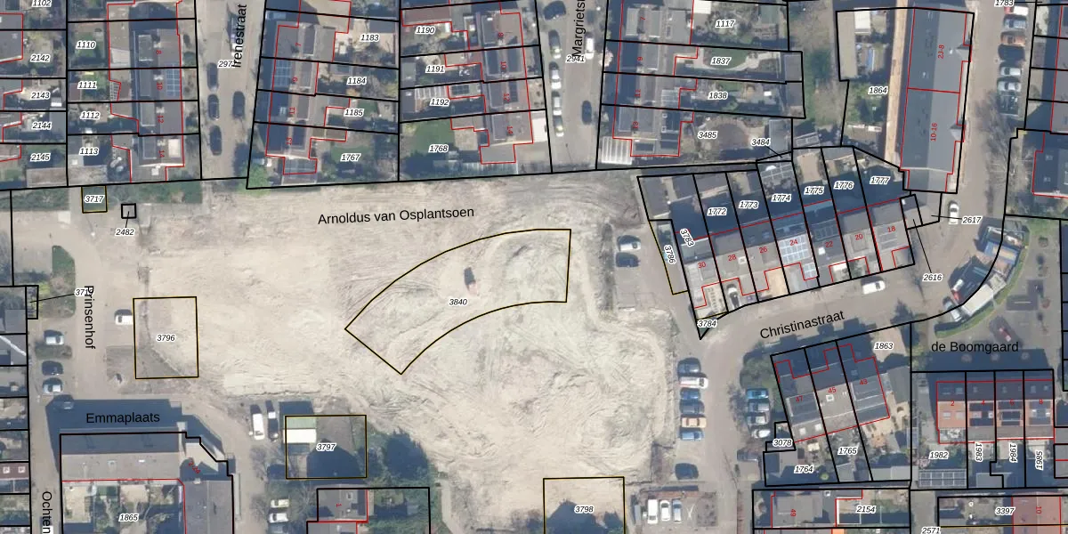 Het perceel waarop Arnoldus van Osplantsoen 30 staat heeft een oppervlakte van 559 m². Dit is een groot perceel. De perceeloppervlakte wordt geregistreerd door het Kadaster. Gedetailleerde informatie over de maten van dit perceel kunt u vinden in het rapport Kadastrale kaart met maatvoering van Arnoldus van Osplantsoen 30.