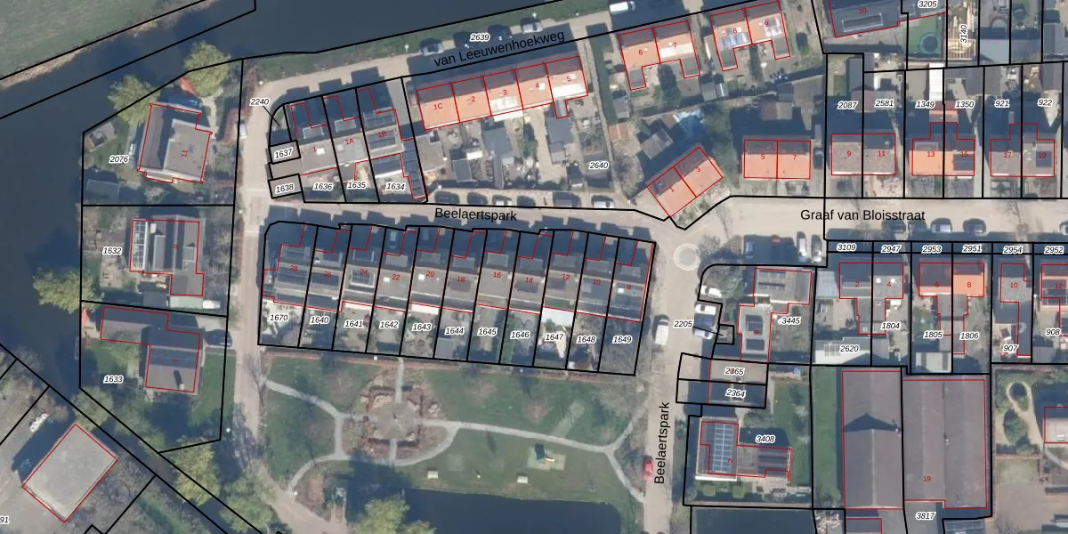Gebruik de zoekbalk of klik op een perceel voor informatie over de adressen binnen dit perceel.
