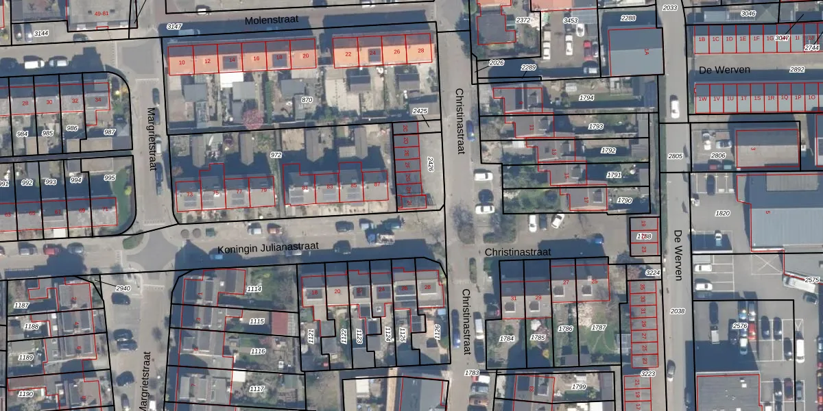 Het perceel waarop Christinastraat 2-I staat heeft een oppervlakte van 224 m². Dit is een middelgroot perceel. De perceeloppervlakte wordt geregistreerd door het Kadaster. Gedetailleerde informatie over de maten van dit perceel kunt u vinden in het rapport Kadastrale kaart met maatvoering van Christinastraat 2-I.