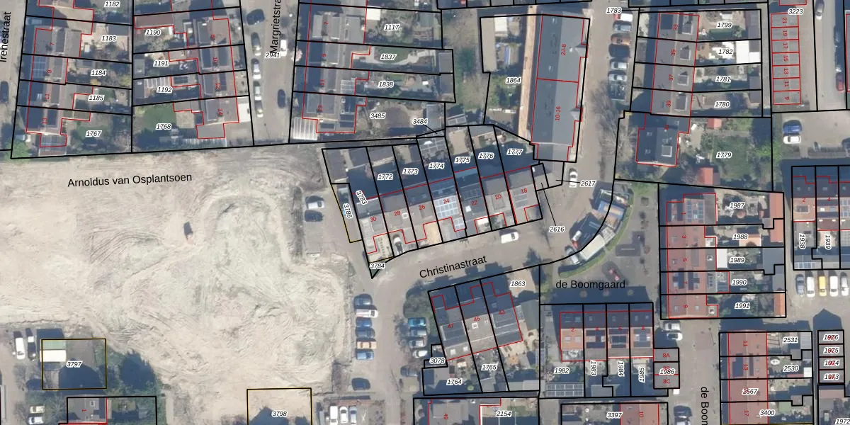 Gebruik de zoekbalk of klik op een perceel voor informatie over de adressen binnen dit perceel.