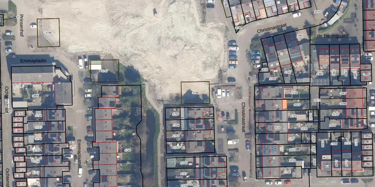 Het perceel waarop Christinastraat 38-C staat heeft een oppervlakte van 175 m². Dit is een middelgroot perceel. De perceeloppervlakte wordt geregistreerd door het Kadaster. Gedetailleerde informatie over de maten van dit perceel kunt u vinden in het rapport Kadastrale kaart met maatvoering van Christinastraat 38-C.