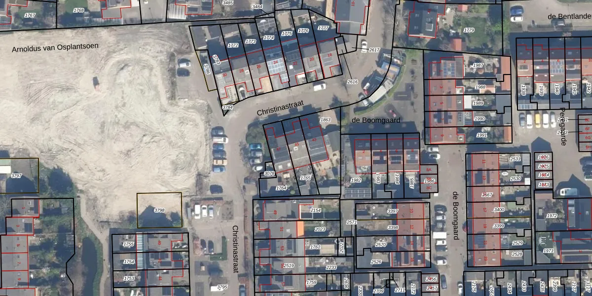 Christinastraat 45 is gelegen op kadastraal perceel BHZ02B1765. Deze kadastrale aanduiding is uniek en wordt gebruikt door het Kadaster om eigendomsrechten en andere zakelijke rechten vast te leggen. Het perceel maakt onderdeel uit van de kadastrale gemeente Benthuizen.