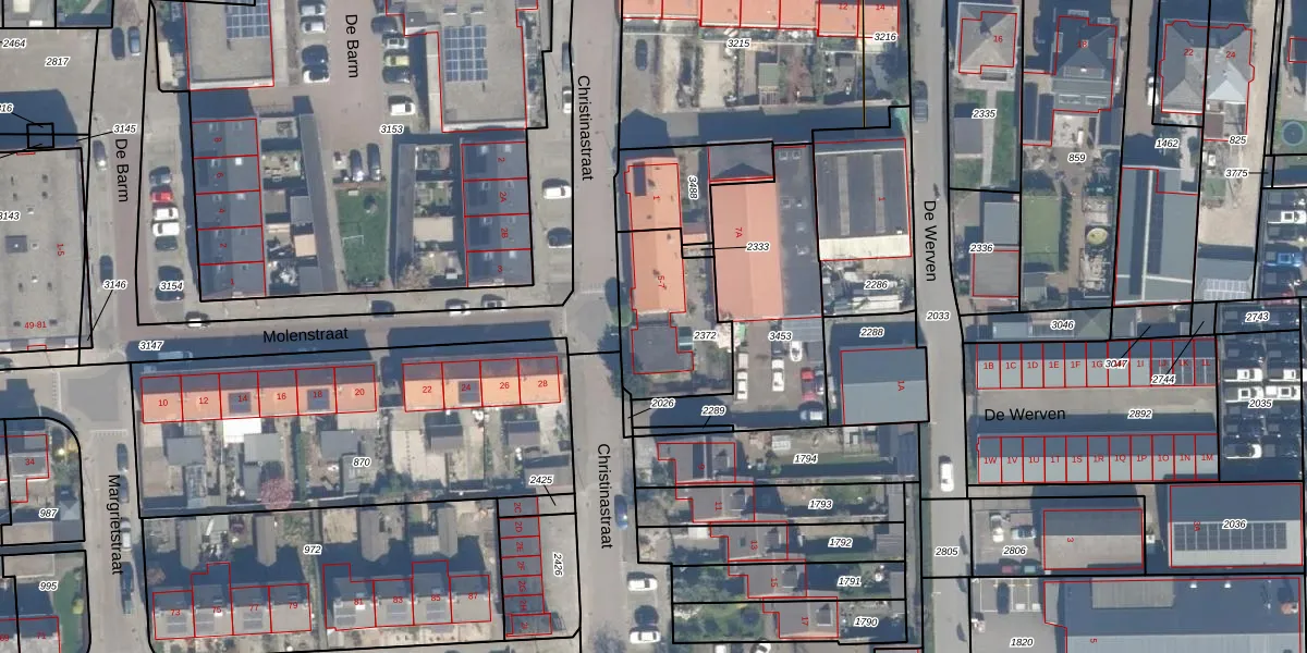 Het perceel waarop Christinastraat 5 staat heeft een oppervlakte van 380 m². Dit is een groot perceel. De perceeloppervlakte wordt geregistreerd door het Kadaster. Gedetailleerde informatie over de maten van dit perceel kunt u vinden in het rapport Kadastrale kaart met maatvoering van Christinastraat 5.