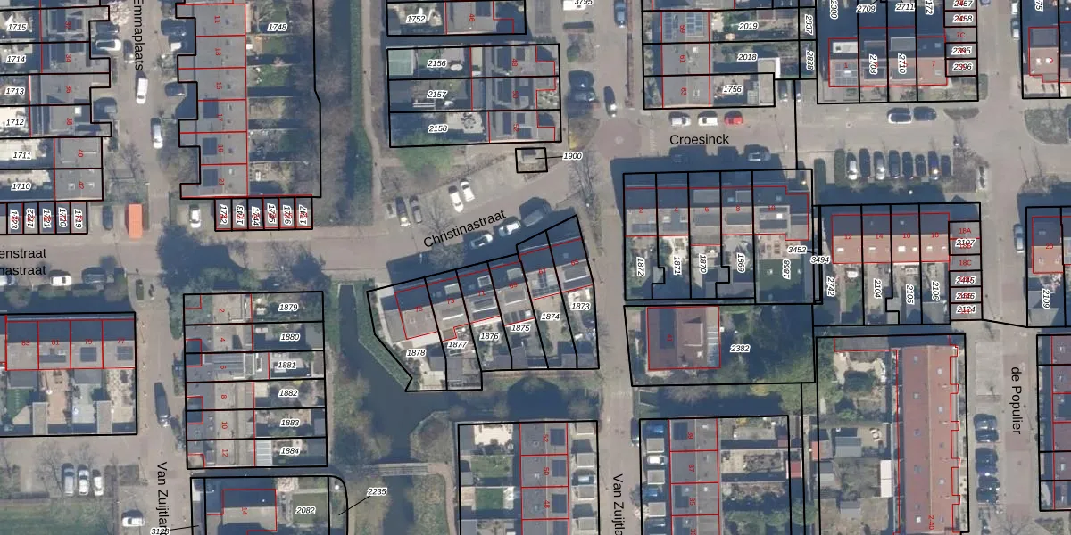 Christinastraat 67 is gelegen op kadastraal perceel BHZ02B1874. Deze kadastrale aanduiding is uniek en wordt gebruikt door het Kadaster om eigendomsrechten en andere zakelijke rechten vast te leggen. Het perceel maakt onderdeel uit van de kadastrale gemeente Benthuizen.