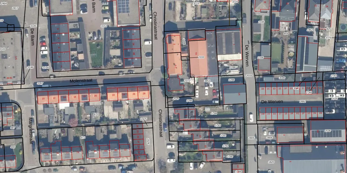 Het perceel waarop Christinastraat 7 staat heeft een oppervlakte van 380 m². Dit is een groot perceel. De perceeloppervlakte wordt geregistreerd door het Kadaster. Gedetailleerde informatie over de maten van dit perceel kunt u vinden in het rapport Kadastrale kaart met maatvoering van Christinastraat 7.