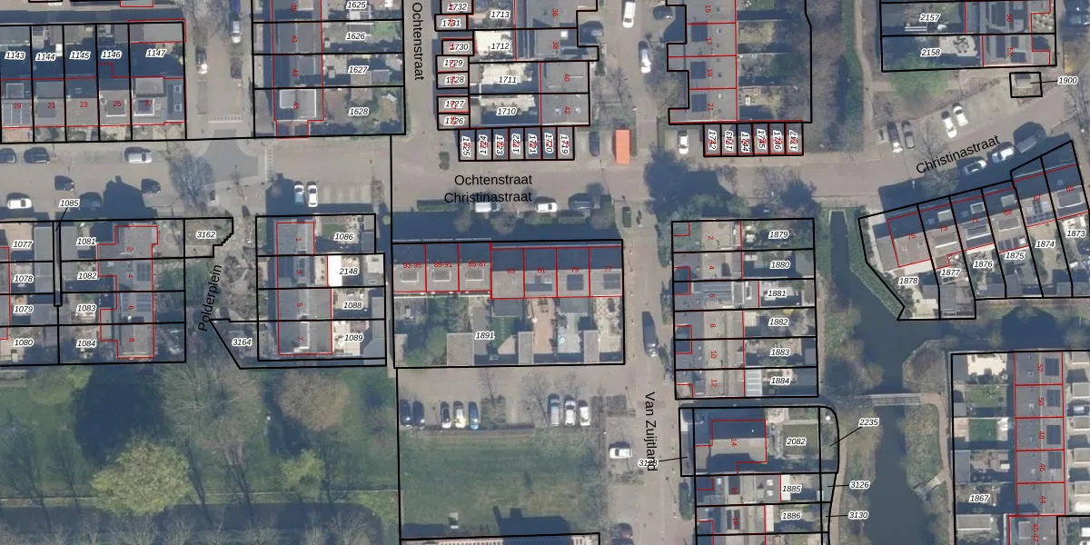 Het perceel waarop Christinastraat 81 staat heeft een oppervlakte van 968 m². Dit is een groot perceel. De perceeloppervlakte wordt geregistreerd door het Kadaster. Gedetailleerde informatie over de maten van dit perceel kunt u vinden in het rapport Kadastrale kaart met maatvoering van Christinastraat 81.