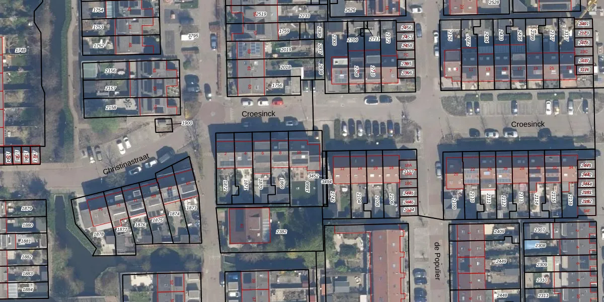 Gebruik de zoekbalk of klik op een perceel voor informatie over de adressen binnen dit perceel.
