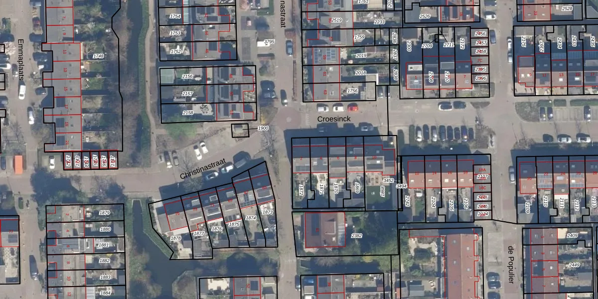 Het perceel waarop Croesinck 2 staat heeft een oppervlakte van 147 m². Dit is een middelgroot perceel. De perceeloppervlakte wordt geregistreerd door het Kadaster. Gedetailleerde informatie over de maten van dit perceel kunt u vinden in het rapport Kadastrale kaart met maatvoering van Croesinck 2.