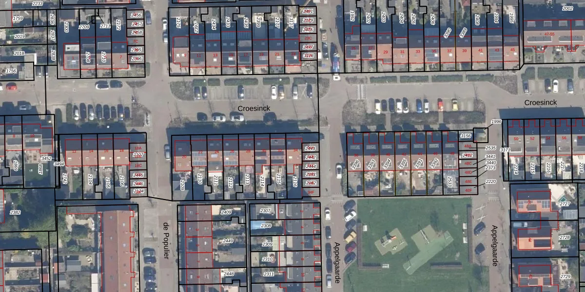 Het perceel waarop Croesinck 34 staat heeft een oppervlakte van 160 m². Dit is een middelgroot perceel. De perceeloppervlakte wordt geregistreerd door het Kadaster. Gedetailleerde informatie over de maten van dit perceel kunt u vinden in het rapport Kadastrale kaart met maatvoering van Croesinck 34.