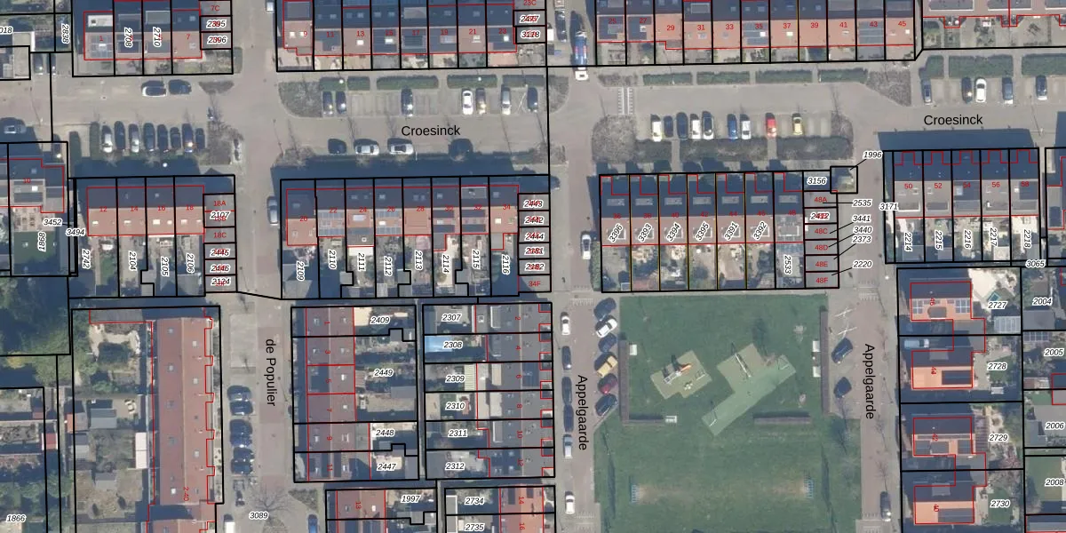 Gebruik de zoekbalk of klik op een perceel voor informatie over de adressen binnen dit perceel.