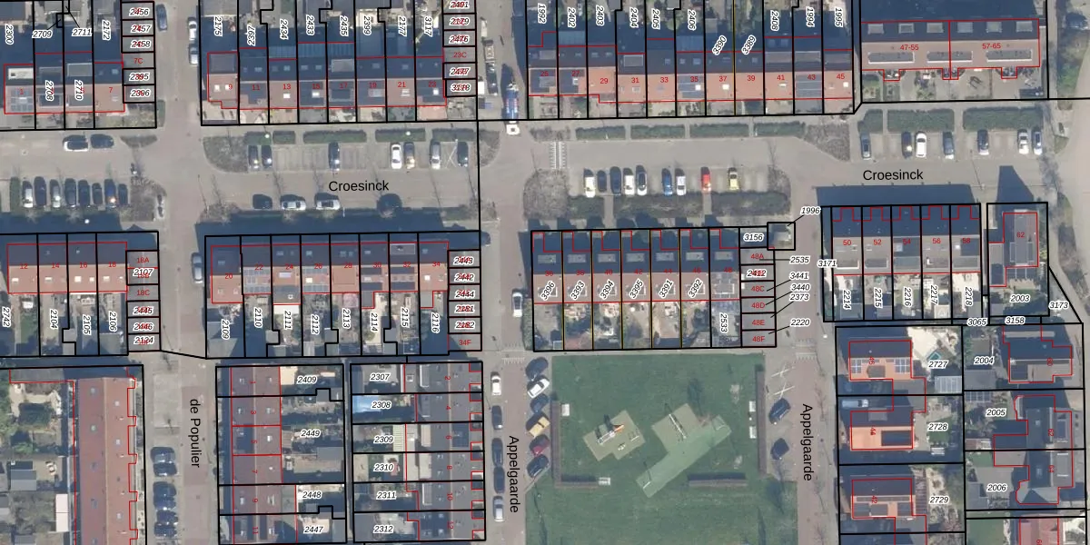 Het perceel waarop Croesinck 36 staat heeft een oppervlakte van 122 m². Dit is een middelgroot perceel. De perceeloppervlakte wordt geregistreerd door het Kadaster. Gedetailleerde informatie over de maten van dit perceel kunt u vinden in het rapport Kadastrale kaart met maatvoering van Croesinck 36.