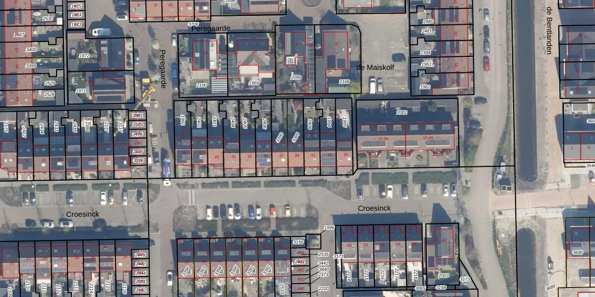 Het perceel waarop Croesinck 39 staat heeft een oppervlakte van 141 m². Dit is een middelgroot perceel. De perceeloppervlakte wordt geregistreerd door het Kadaster. Gedetailleerde informatie over de maten van dit perceel kunt u vinden in het rapport Kadastrale kaart met maatvoering van Croesinck 39.