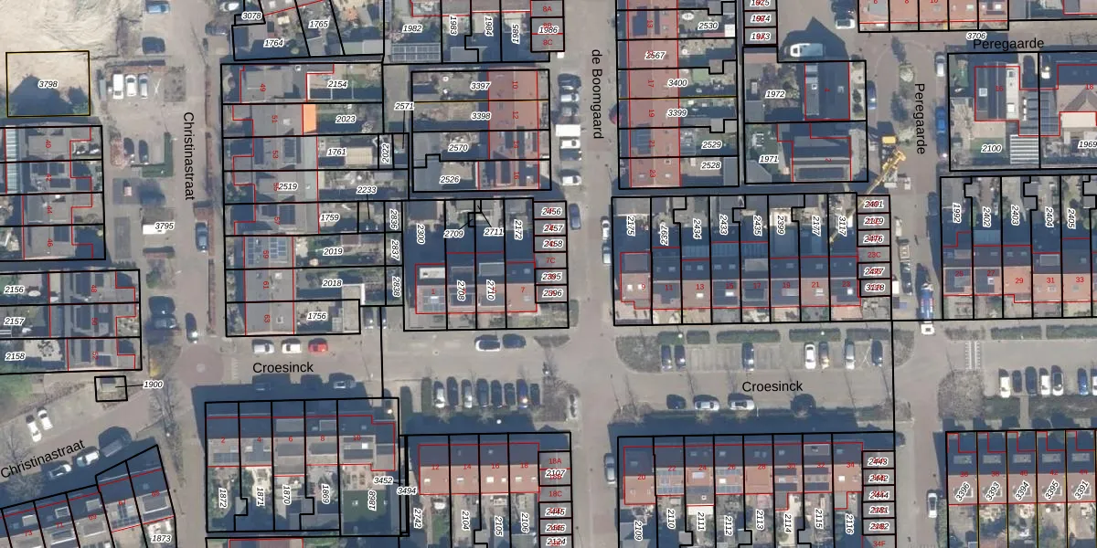 Het perceel waarop Croesinck 7-B staat heeft een oppervlakte van 18 m². Dit is een klein perceel. De perceeloppervlakte wordt geregistreerd door het Kadaster. Gedetailleerde informatie over de maten van dit perceel kunt u vinden in het rapport Kadastrale kaart met maatvoering van Croesinck 7-B.