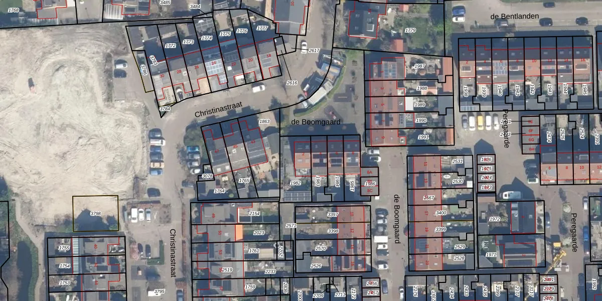 Het perceel waarop de Boomgaard 2 staat heeft een oppervlakte van 230 m². Dit is een middelgroot perceel. De perceeloppervlakte wordt geregistreerd door het Kadaster. Gedetailleerde informatie over de maten van dit perceel kunt u vinden in het rapport Kadastrale kaart met maatvoering van de Boomgaard 2.