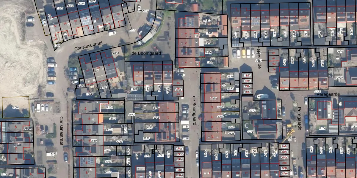 Het perceel waarop de Boomgaard 8-B staat heeft een oppervlakte van 37 m². Dit is een klein perceel. De perceeloppervlakte wordt geregistreerd door het Kadaster. Gedetailleerde informatie over de maten van dit perceel kunt u vinden in het rapport Kadastrale kaart met maatvoering van de Boomgaard 8-B.