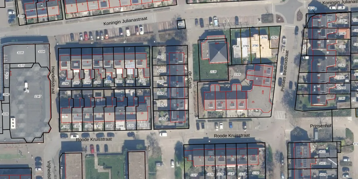 Gebruik de zoekbalk of klik op een perceel voor informatie over de adressen binnen dit perceel.