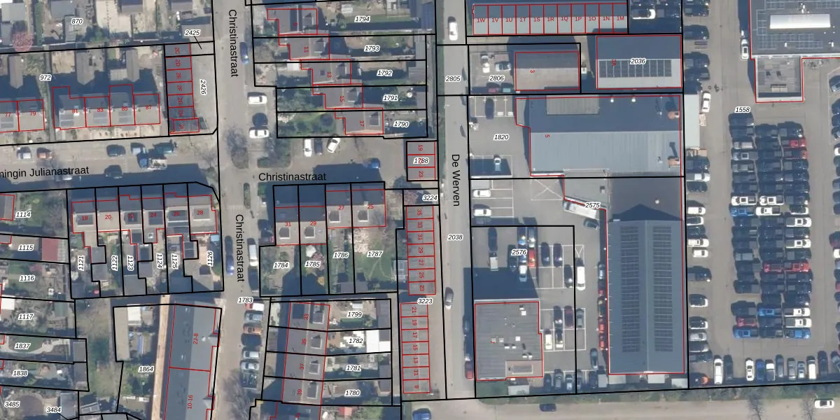 Het perceel waarop De Werven 35 staat heeft een oppervlakte van 467 m². Dit is een groot perceel. De perceeloppervlakte wordt geregistreerd door het Kadaster. Gedetailleerde informatie over de maten van dit perceel kunt u vinden in het rapport Kadastrale kaart met maatvoering van De Werven 35.