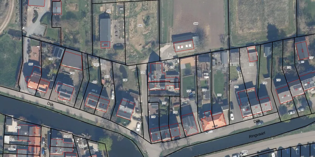 Het perceel waarop Dijk 12 staat heeft een oppervlakte van 280 m². Dit is een middelgroot perceel. De perceeloppervlakte wordt geregistreerd door het Kadaster. Gedetailleerde informatie over de maten van dit perceel kunt u vinden in het rapport Kadastrale kaart met maatvoering van Dijk 12.