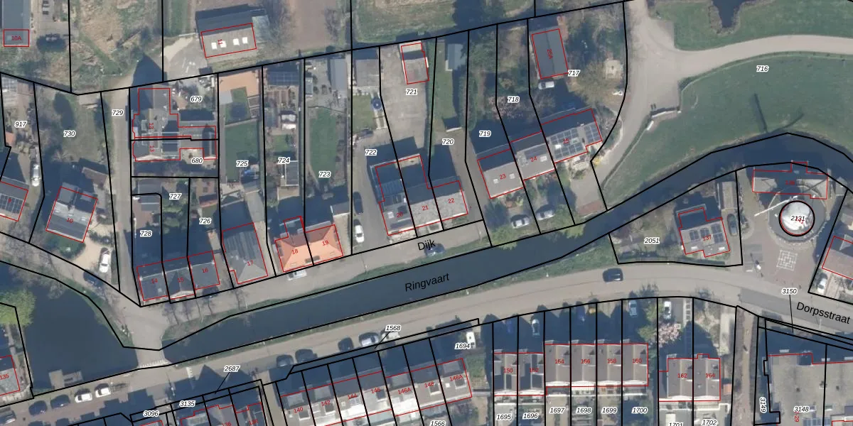 Het perceel waarop Dijk 21 staat heeft een oppervlakte van 410 m². Dit is een groot perceel. De perceeloppervlakte wordt geregistreerd door het Kadaster. Gedetailleerde informatie over de maten van dit perceel kunt u vinden in het rapport Kadastrale kaart met maatvoering van Dijk 21.