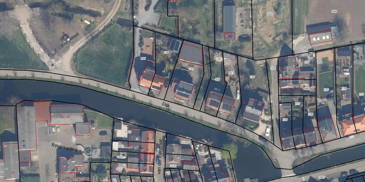 Het perceel waarop Dijk 7 staat heeft een oppervlakte van 540 m². Dit is een groot perceel. De perceeloppervlakte wordt geregistreerd door het Kadaster. Gedetailleerde informatie over de maten van dit perceel kunt u vinden in het rapport Kadastrale kaart met maatvoering van Dijk 7.