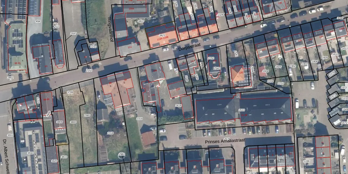 Het perceel waarop Dorpsstraat 110 staat heeft een oppervlakte van 852 m². Dit is een groot perceel. De perceeloppervlakte wordt geregistreerd door het Kadaster. Gedetailleerde informatie over de maten van dit perceel kunt u vinden in het rapport Kadastrale kaart met maatvoering van Dorpsstraat 110.