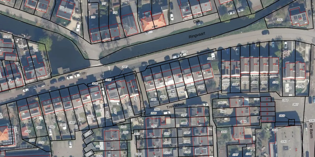 Het adres ligt op het perceel BHZ02-B-1562, dat zich in de kadastrale gemeente Benthuizen bevindt. Het perceel is kleiner dan gemiddeld in Benthuizen. Het perceel is 154 m² groot, terwijl het gemiddelde ligt op 4750,15 m². Het kleinste perceel in de kadastrale gemeente is 0 m² groot. De grootste perceeloppervlakte is 44,1 ha. Er zijn geen andere adressen aanwezig op het perceel. In de Basisregistratie Kadaster (BRK) werden de grenzen van het perceel geregistreerd op 30-01-2007.