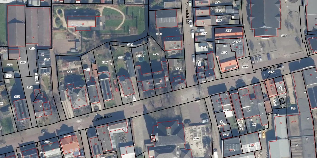 Het perceel waarop Dorpsstraat 37 staat heeft een oppervlakte van 350 m². Dit is een groot perceel. De perceeloppervlakte wordt geregistreerd door het Kadaster. Gedetailleerde informatie over de maten van dit perceel kunt u vinden in het rapport Kadastrale kaart met maatvoering van Dorpsstraat 37.