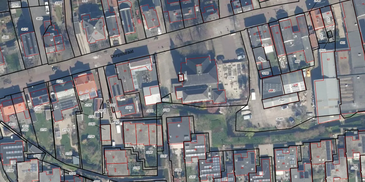 Het perceel waarop Dorpsstraat 42 staat heeft een oppervlakte van 1684 m². Dit is een zeer groot perceel. De perceeloppervlakte wordt geregistreerd door het Kadaster. Gedetailleerde informatie over de maten van dit perceel kunt u vinden in het rapport Kadastrale kaart met maatvoering van Dorpsstraat 42.